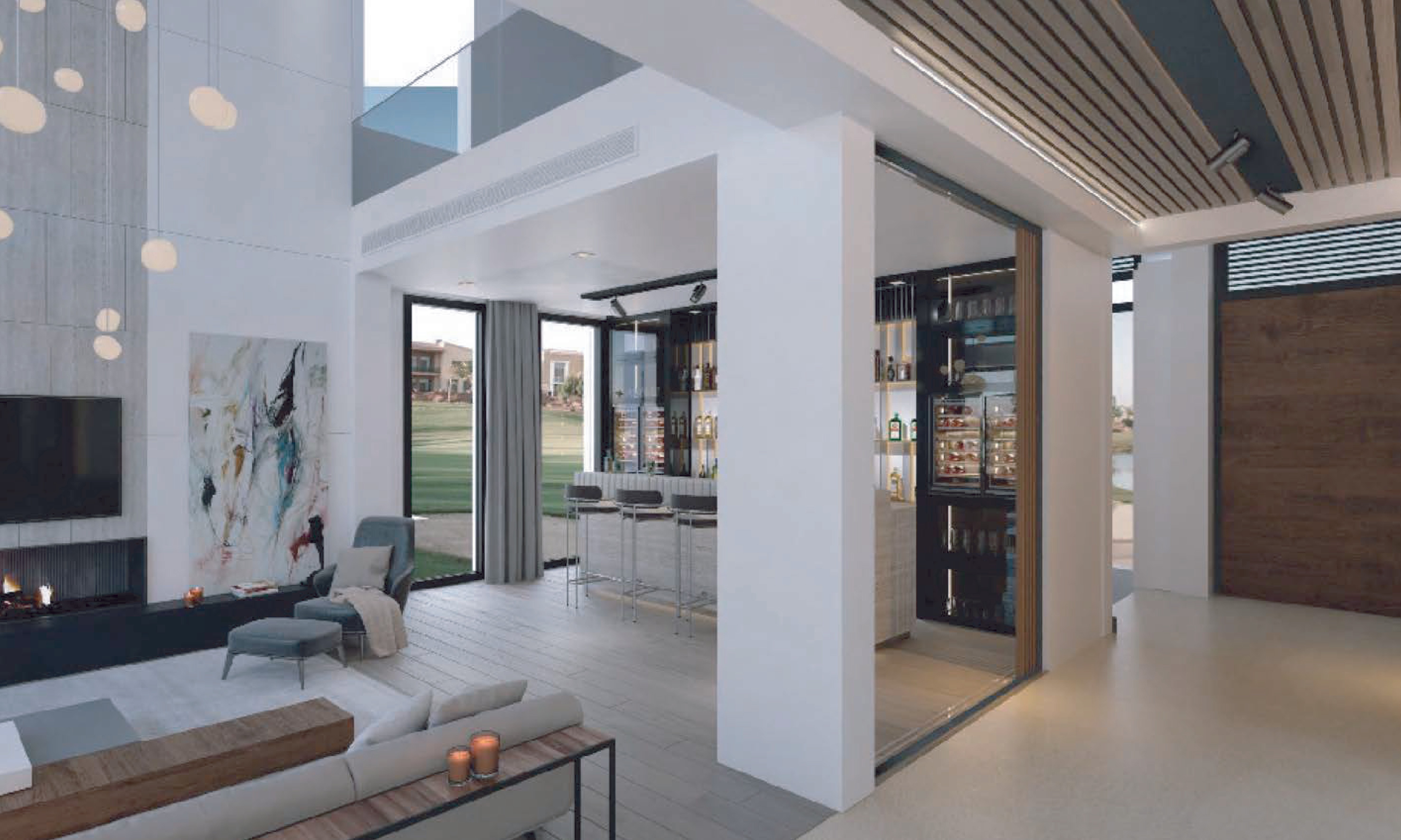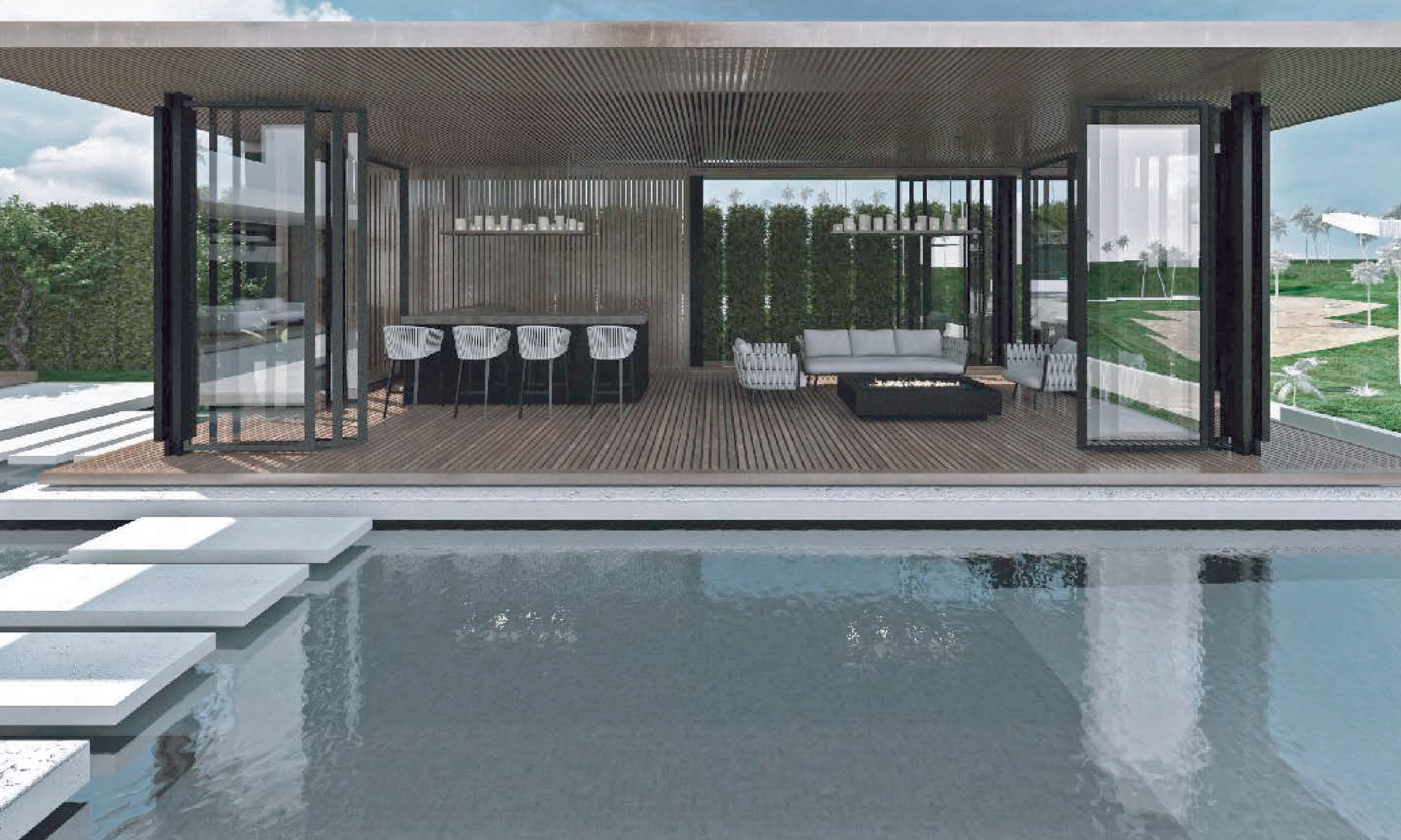 The design emphasizes openness and balance, with expansive glazing that invites natural light and strengthens the connection between interior and exterior spaces. Carefully integrated outdoor areas and shaded terraces enhance comfort while reinforcing the home’s calm, modern character.