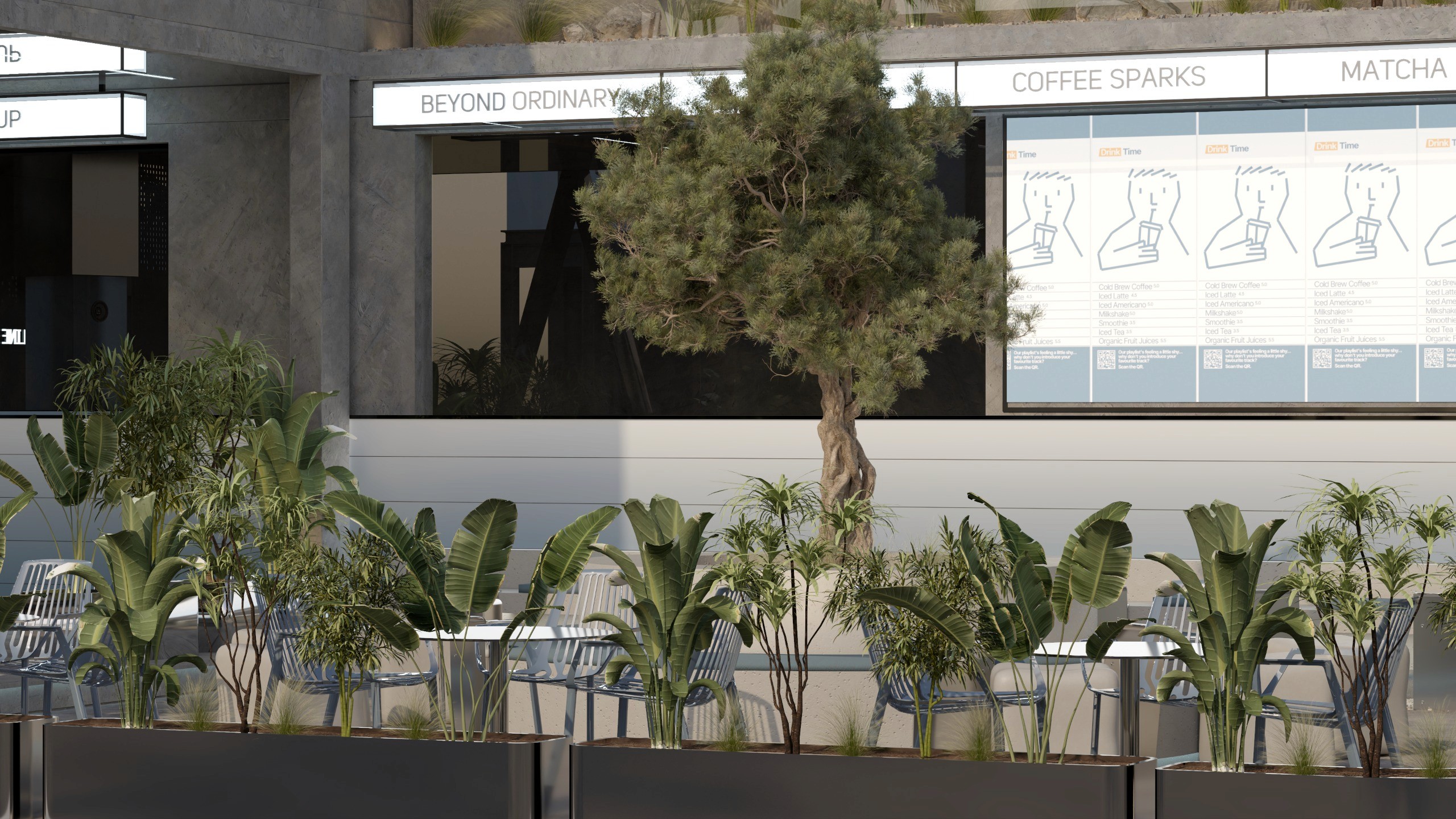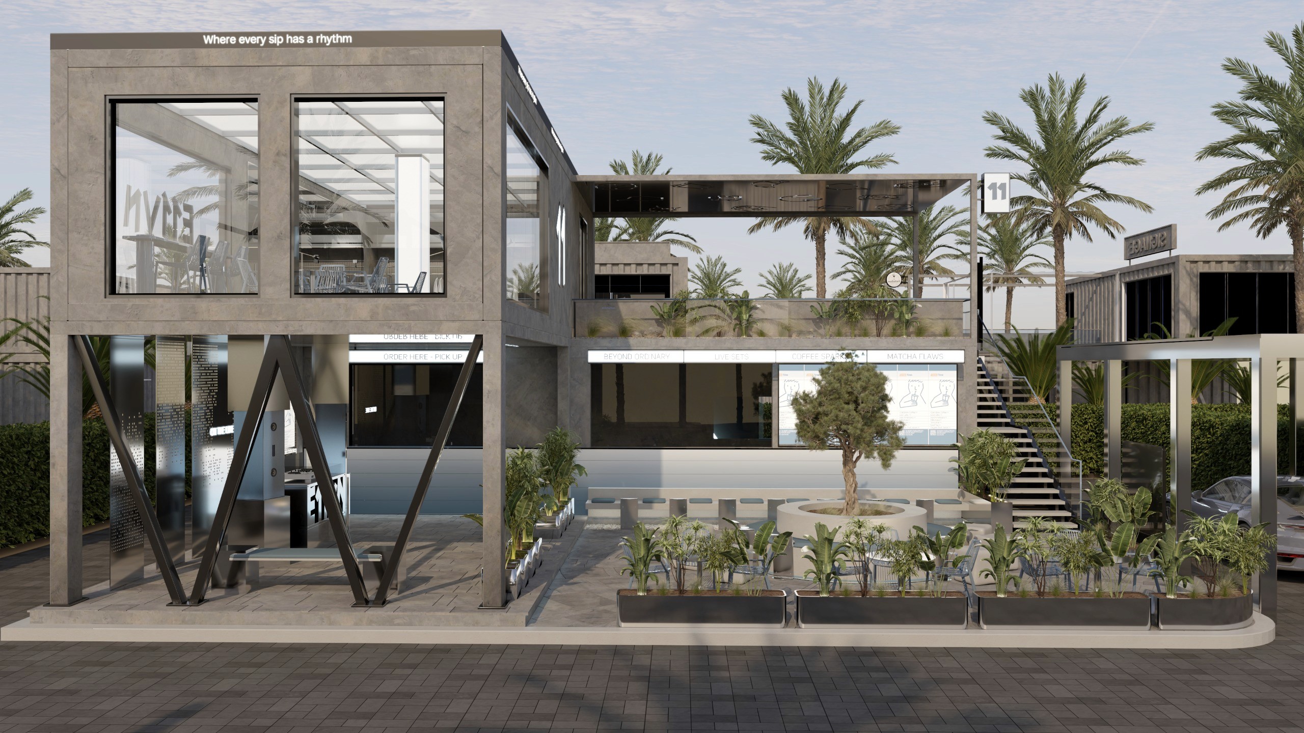 ELVN reimagines the coffee shop as an experiential space, where architecture, function, and atmosphere work in harmony. Elevated seating areas, open terraces, and carefully framed views encourage social interaction and relaxation, while minimal materials and muted tones keep the focus on clarity and comfort.