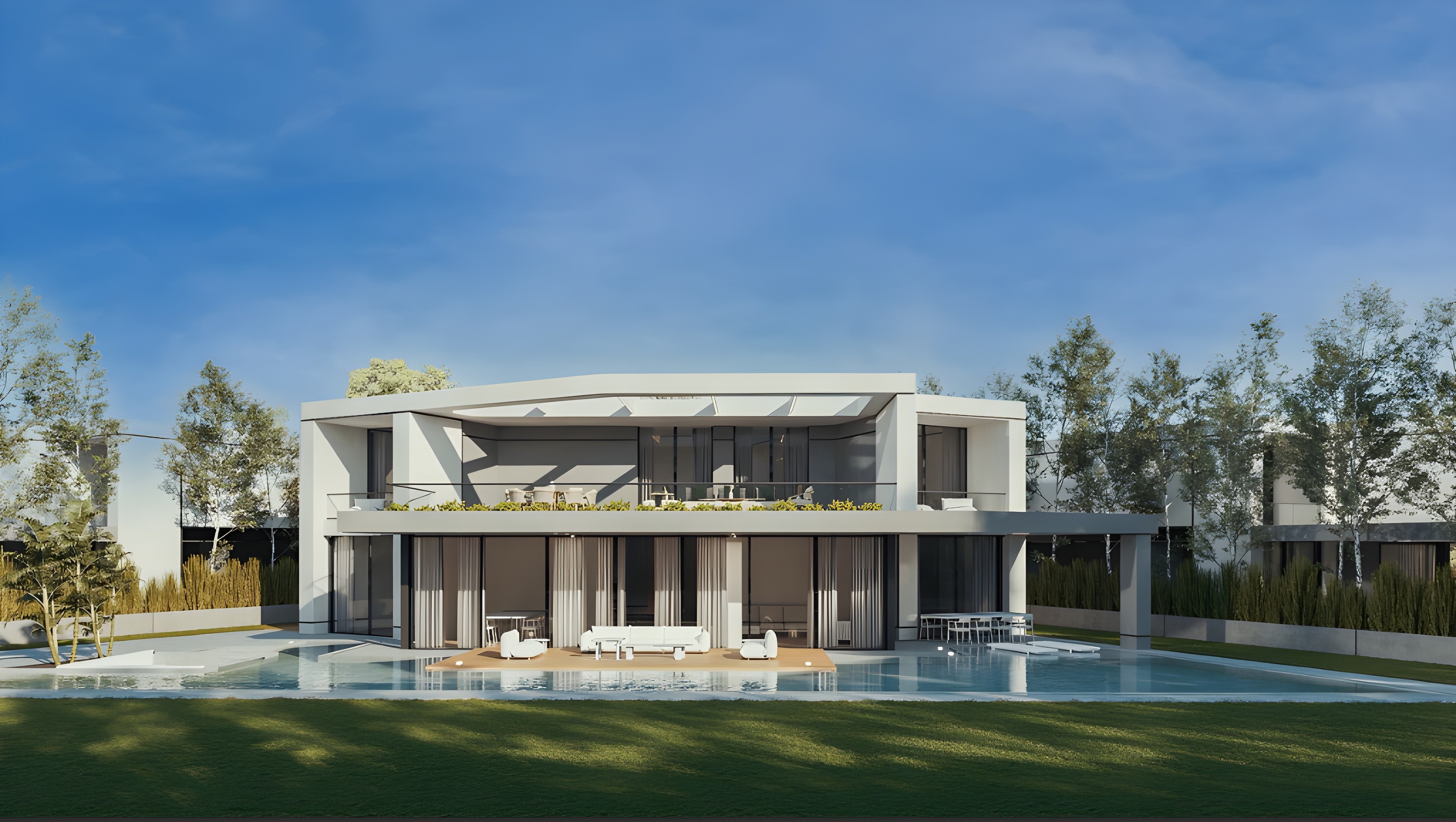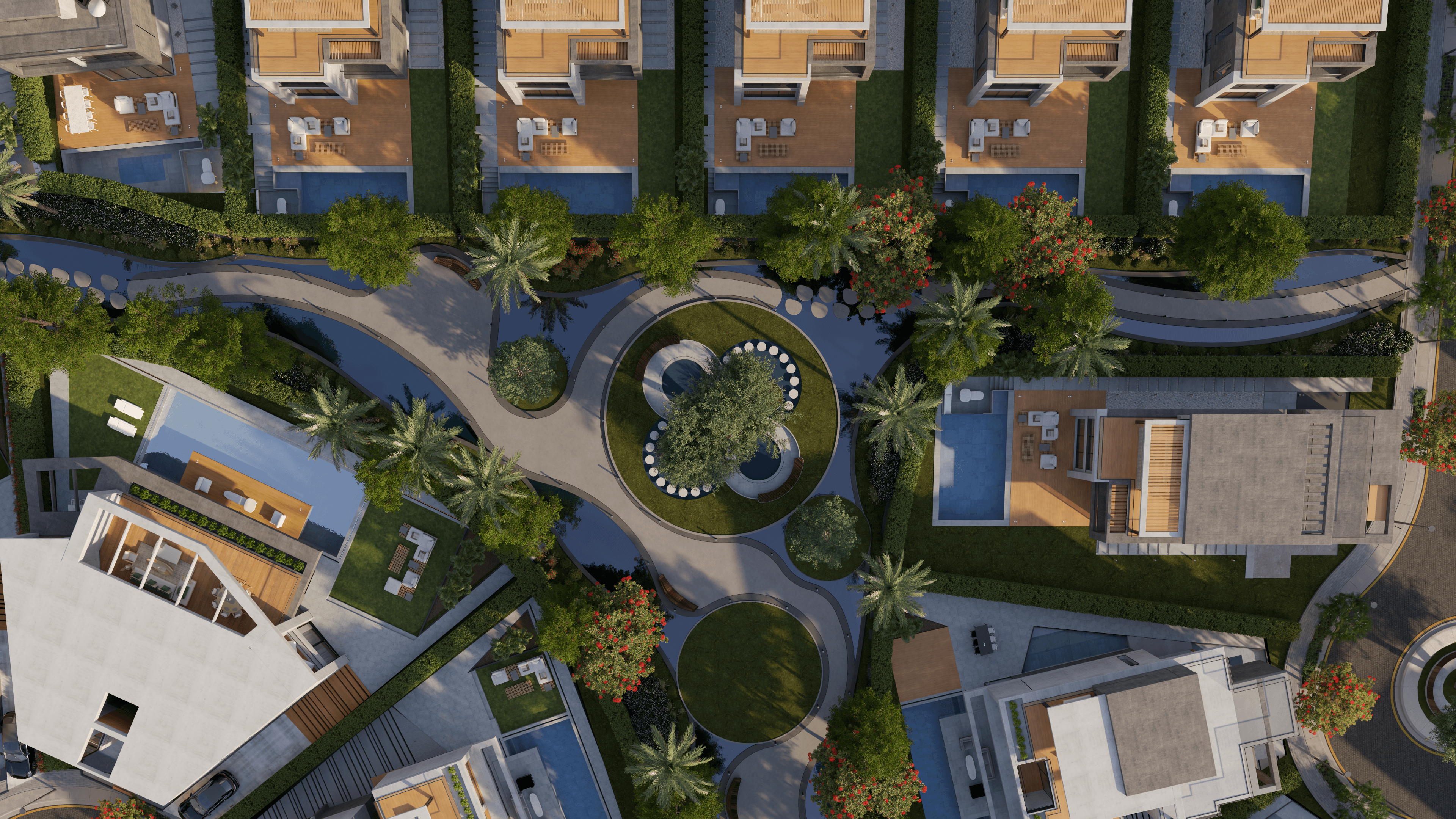 The project extends into fully integrated interior and landscape design. Through a careful composition of hardscape, waterscape, and softscape elements, the environment is designed to enhance daily living and create a balanced relationship between built form and open space.